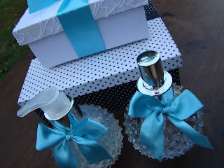 CAIXA EM RENDA CHANTILLY E CX EM TECIDO ALGODÃO + HOME SPRAY E SABONETE LIQUIDO. TODO PARA COMPOR A LOJA DE EVENTOS EM SÃO PAULO. ROSE OBRIGADA PELO CARINHO.....BJOS